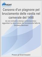 Canzona d'un piagnone pel bruciamento delle vanita nel carnevale del 1498 : da una rarissima stampa contemporanea : agguintavi La descrizione del bruciamento fatta da Girolamo Benivieni .— : Presso gli Eredi Grazzini, 1864 .— 45 с. — Lang: ita .— URL: https://rucont.ru/efd/114648 (дата обращения: 22.11.2025)