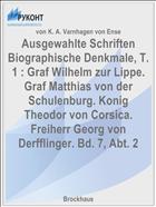 Ausgewahlte Schriften Biographische Denkmale, T. 1 : Graf Wilhelm zur Lippe. Graf Matthias von der Schulenburg. Konig Theodor von Corsica. Freiherr Georg von Derfflinger. Bd. 7, Abt. 2 / von K. A. Varnhagen von Ense .— 3. verm. Aufl. — : Brockhaus, 1872 .— 342 с. — Lang: ger .— URL: https://rucont.ru/efd/89097 (дата обращения: 19.11.2025)