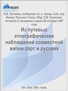 Путилов, П.В. Из путевых этнографических наблюдений совместной жизни сарт и русских / сообщение чл.-с. Запад.-Сиб. отд. Импер. Русского Геогр. Общ. П.В. Путилова, читанное в заседании отдела 26 октября 1887 года; П.В. Путилов .— Издание Западно-Сибирского отдела Императорского Русского Географического Общества .— : Тип. Акм. Обл. прав., 1887 .— 32 с. — URL: https://rucont.ru/efd/117954 (дата обращения: 11.12.2025)