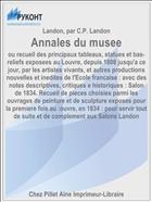Landon, C.P. Annales du musee : ou recueil des principaux tableaux, statues et bas-reliefs exposees au Louvre, depuis 1808 jusqu'a ce jour, par les artistes vivants, et autres productions nouvelles et inedites de l'Ecole francaise : avec des notes descriptives, critiques e historiques : Salon de 1834. Recueil de pieces choisies parmi les ouvrages de peinture et de sculpture exposes pour la premiere fois au :ouvre, en 1834 : pour servir tout de suite et de complement aux Salons Landon / par C.P. Landon; C.P. Landon .— : Chez Pillet Aine Imprimeur-Libraire, 1834 .— 150 с. — Lang: fre .— URL: https://rucont.ru/efd/124192 (дата обращения: 07.12.2025)