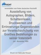 Ausstellung von Autographen, Bildern, Schattenrissen, Druckwerken und Errinnerungs-Gegenstanden zur Veranschaulichung von Goethes Beziehungen zu seiner Vaterstadt : Juli - November 1895 / veranstaltet vom freien deutschen Hochstift .— : Druck von Gebruder Knauer .— 207 с. — Lang: ger .— URL: https://rucont.ru/efd/127887 (дата обращения: 06.12.2025)