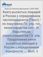 Лодыгин Николай Дмитриевич (1842-1885). Книга рысистых лошадей в России с определением чистопородности [Текст] / по поручению Гл. упр. гос. коннозаводства сост. Н. Лодыгиным, корреспондентом Гл. упр. Продолжение книги рысистых лошадей в России с определением породности …. Вып. 3 / Лодыгин Николай Дмитриевич (1842-1885) .— : [Б.и.], 1885 .— 95 с. — URL: https://rucont.ru/efd/133397 (дата обращения: 05.12.2025)