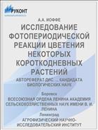 НЕКОТОРЫХ КОРОТКОДНЕВНЫХ РАСТЕНИЙ