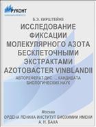 ОРДЕНА ЛЕНИНА ИНСТИТУТ БИОХИМИИ ИИ. <...> ИССЛЕДОВАНИЕ ФИКСАЦИИ МОЛЕКУЛЯРНОГО АЗОТА