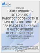 СТОЛЬНАЯ, Е.С. ЭФФЕКТИВНОСТЬ ОТБОРА ПО РАБОТОСПОСОБНОСТИ И КАЧЕСТВУ ПОТОМСТВА ПРИ РАБОТЕ С ЛИНИЯМИ В ЧИСТОКРОВНОЙ ВЕРХОВОЙ ПОРОДЕ : АВТОРЕФЕРАТ ДИС. ... КАНДИДАТА БИОЛОГИЧЕСКИХ НАУК / Е.С. СТОЛЬНАЯ .— Москва : МОСКОВСКАЯ ОРДЕНА ТРУДОВОГО КРАСНОГО ЗНАМЕНИ ВЕТЕРИНАРНАЯ АКАДЕМИЯ ИМЕНИ К. И. СКРЯБИНА, 1989 .— 20 с. — URL: https://rucont.ru/efd/31605 (дата обращения: 13.11.2025)