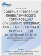 ГУХТАБАЕВ, С.Т. СОВЕРШЕНСТВОВАНИЕ ПНЕВМАТИЧЕСКОГО СОРТИРОВЩИКА ОПУШЕННЫХ ПОСЕВНЫХ СЕМЯН ХЛОПЧАТНИКА В ВЕРТИКАЛЬНОМ ВОЗДУШНОМ ПОТОКЕ : АВТОРЕФЕРАТ ДИС. ... КАНДИДАТА ТЕХНИЧЕСКИХ НАУК / С.Т. ГУХТАБАЕВ .— Ташкент : ТАШКЕНТСКИЙ ИНСТИТУТ ТЕКСТИЛЬНОЙ И ЛЕГКОЙ ПРОМЫШЛЕННОСТИ, 2004 .— 18 с. — URL: https://rucont.ru/efd/34934 (дата обращения: 14.11.2025)