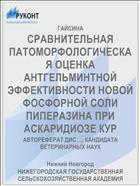 СРАВНИТЕЛЬНАЯ ПАТОМОРФОЛОГИЧЕСКАЯ ОЦЕНКА АНТГЕЛЬМИНТНОЙ ЭФФЕКТИВНОСТИ НОВОЙ ФОСФОРНОЙ СОЛИ ПИПЕРАЗИНА ПРИ АСКАРИДИОЗЕ КУР (90,00 руб.)
