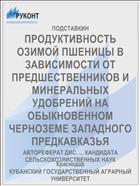 ПРОДУКТИВНОСТЬ ОЗИМОЙ ПШЕНИЦЫ