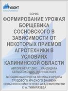 ФОРМИРОВАНИЕ УРОЖАЯ БОРЩЕВИКА СОСНОВСКОГО В ЗАВИСИМОСТИ ОТ НЕКОТОРЫХ ПРИЕМОВ АГРОТЕХНИКИ В УСЛОВИЯХ КАЛИНИНСКОЙ ОБЛАСТИ (60,00 руб.)