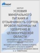 АДОЛЬФ, И.Л. УСЛОВИЯ МИНЕРАЛЬНОГО ПИТАНИЯ И ОТЗЫВЧИВОСТЬ СОРТОВ ЯРОВОЙ ПШЕНИЦЫ НА УДОБРЕНИЕ В ЦЕЛИНОГРАДСКОЙ ОБЛАСТИ : АВТОРЕФЕРАТ ДИС. ... КАНДИДАТА СЕЛЬСКОХОЗЯЙСТВЕННЫХ НАУК / И.Л. АДОЛЬФ .— Москва : МОСКОВСКАЯ ОРДЕНА ЛЕНИНА И ОРДЕНА ТРУДОВОГО КРАСНОГО ЗНАМЕНИ СЕЛЬСКОХОЗЯЙСТВЕННАЯ АКАДЕМИЯ ИМЕНИ К. А. ТИМИРЯЗЕВА, 1978 .— 1 с. — URL: https://rucont.ru/efd/41815 (дата обращения: 07.11.2025)