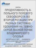 ВАРФА, А.Е. ПРОДУКТИВНОСТЬ 8-ПОЛЬНОГО ПОЛЕВОГО СЕВООБОРОТА ВО ВТОРОЙ РОТАЦИИ ПРИ РАЗНЫХ СИСТЕМАХ УДОБРЕНИЯ НА ТЕМНО-СЕРОЙ ЛЕСНОЙ ПОЧВЕ ВЛАДИМИРСКОГО ОПОЛЬЯ : АВТОРЕФЕРАТ ДИС. ... КАНДИДАТА СЕЛЬСКОХОЗЯЙСТВЕННЫХ НАУК / А.Е. ВАРФА .— Москва : МОСКОВСКАЯ СЕЛЬСКОХОЗЯЙСТВЕННАЯ АКАДЕМИЯ ИМЕНИ К. А. ТИМИРЯЗЕВА, 1999 .— 1 с. — URL: https://rucont.ru/efd/43356 (дата обращения: 19.11.2025)