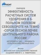 СВИРИДОВ, Д.А. ЭФФЕКТИВНОСТЬ РАСЧЕТНЫХ СИСТЕМ УДОБРЕНИЯ В 8-ПОЛЬНОМ ПОЛЕВОМ СЕВООБОРОТЕ НА ТЕМНО-СЕРОЙ ЛЕСНОЙ ПОЧВЕ ЦЕНТРАЛЬНОГО РАЙОНА РОССИИ : АВТОРЕФЕРАТ ДИС. ... КАНДИДАТА СЕЛЬСКОХОЗЯЙСТВЕННЫХ НАУК / Д.А. СВИРИДОВ .— Москва : МОСКОВСКАЯ СЕЛЬСКОХОЗЯЙСТВЕННАЯ АКАДЕМИЯ ИМЕНИ К. А. ТИМИРЯЗЕВА, 1997 .— 1 с. — URL: https://rucont.ru/efd/43391 (дата обращения: 06.11.2025)