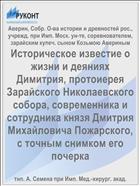 Аверин, К.И. Историческое известие о жизни и деяниях Димитрия, протоиерея Зарайского Николаевского собора, современника и сотрудника князя Дмитрия Михайловича Пожарского, с точным снимком его почерка / Собр. О-ва истории и древностей рос., учрежд. при Имп. Моск. ун-те, соревнователем, зарайским купеч. сыном Козьмою Авериным; К.И. Аверин .— : тип. А. Семена при Имп. Мед.-хирург. акад., 1836 .— 27 с. : ил. — URL: https://rucont.ru/efd/51031 (дата обращения: 16.12.2025)