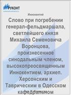 Иннокентий. Слово при погребении генерал-фельдмаршала, светлейшего князя Михаила Семеновича Воронцова, произнесенное синодальным членом, высокопреосвященным Иннокентием, архиеп. Херсонским и Таврическим в Одесском кафедральном Преображенском соборе 10-го ноября, 1856 года / Иннокентий .— : тип. П. Францова, 1856 .— 41 с. — URL: https://rucont.ru/efd/51277 (дата обращения: 14.12.2025)