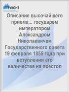 Описание высочайшего приема... государем императором Александром Николаевичем Государственного совета 19 февраля 1855 года при вступлении его величества на престол .— : [Б.и.], 1855 .— 21 с. — URL: https://rucont.ru/efd/51740 (дата обращения: 08.12.2025)
