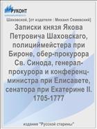 Шаховской, Я.П. Записки князя Якова Петровича Шаховскаго, полициймейстера при Бироне, обер-прокурора Св. Синода, генерал-прокурора и конференц-министра при Елисавете, сенатора при Екатерине II. 1705-1777 / [от издателя : Михаил Семевский]; Я.П. Шаховской .— : издание "Русской старины", 1872 .— 362 с. — URL: https://rucont.ru/efd/58860 (дата обращения: 15.12.2025)