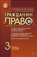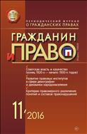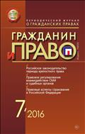 «Гражданин и право» - научно-теоретический журнал об основных правах и обязанностях граждан при урегулировании правоотношений с гражданами, организациями, а также при защите нарушенных гражданских прав в судах и других инстанциях. <...> Ценным преимуществом издания является публикация статей ведущих отечественных и зарубежных авторов по проблемам, возникающим при урегулировании гражданских правоотношений с гражданами, организациями, а также при защите нарушенных гражданских прав в судах и иных организациях. <...> Читатели журнала имеют возможность быть в курсе развития современной правовой науки и практики. <...>