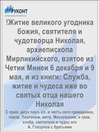 !Житие великого угодника божия, святителя и чудотворца Николая, архиепископа Мирликийского, взятое из Четии Минеи 6 декабря и 9 мая, и из книги: Служба, житие и чудеса иже во святых отца нашего Николая : С прил. двух поуч. сл. в честь сего праведника, говор. Платоном, митр. Московским, и грав. изобр. святителя и чудес его .— : А. Глазунов с братьями, 1842 .— 110 с. : ил. — URL: https://rucont.ru/efd/64598 (дата обращения: 06.12.2025)