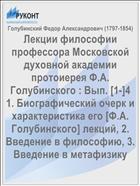 Голубинский Федор Александрович (1797-1854). Лекции философии профессора Московской духовной академии протоиерея Ф.А. Голубинского : Вып. [1-]4 1. Биографический очерк и характеристика его [Ф.А. Голубинского] лекций, 2. Введение в философию, 3. Введение в метафизику / Голубинский Федор Александрович (1797-1854) .— : [Б.и.] .— 82 с. — URL: https://rucont.ru/efd/80023 (дата обращения: 06.12.2025)