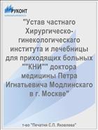 "Устав частнаго Хирургическо-гинекологическаго института и лечебницы для приходящих больных ""КНИ"" доктора медицины Петра Игнатьевича Модлинскаго в г. Москве" .— : т-во "Печатня С.П. Яковлева", 1900 .— 15 с. — URL: https://rucont.ru/efd/81520 (дата обращения: 08.12.2025)