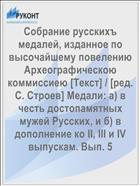 Собрание русскихъ медалей, изданное по высочайшему повелению Археографическою коммиссиею [Текст] / [ред. С. Строев] Медали: а) в честь достопамятных мужей Русских, и б) в дополнение ко II, III и IV выпускам. Вып. 5 .— : [Б.и.], 1846 .— 46 с. — URL: https://rucont.ru/efd/81968 (дата обращения: 16.12.2025)