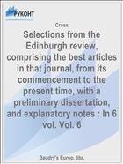 Cross, M. Selections from the Edinburgh review, comprising the best articles in that journal, from its commencement to the present time, with a preliminary dissertation, and explanatory notes : In 6 vol. Vol. 6 / M. Cross .— : Baudry's Europ. libr., 1836 .— 415 с. — Lang: eng .— URL: https://rucont.ru/efd/85623 (дата обращения: 11.12.2025)