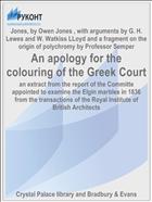 Jones, O. An apology for the colouring of the Greek Court : an extract from the report of the Committe appointed to examine the Elgin marbles in 1836 from the transactions of the Royal Institute of British Architects / by Owen Jones , with arguments by G. H. Lewes and W. Watkiss LLoyd and a fragment on the origin of polychromy by Professor Semper; O. Jones .— : Crystal Palace library and Bradbury & Evans, 1854 .— 51 с. — Lang: eng .— URL: https://rucont.ru/efd/89809 (дата обращения: 07.12.2025)