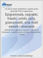 Epigrammata, nagrobki, fraszki, ucinki, zarty, grzecznostki, oraz misli zwiezle i dowcipne : bezimiennych pisarzow naszych, czescia juz drukowane, czescia jeszcze drukiem nieogloszone : zebrane / na cztery ksiegi rozdzielone i wydane przez Ignacego Piotra Legatowicza .— Nakladem autora .— : Drukiem Jozefa Zawadzkiego, 1854 .— 41 с. — Lang: pol .— URL: https://rucont.ru/efd/90434 (дата обращения: 07.12.2025)